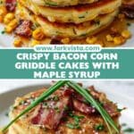 These Bacon Corn Griddle Cakes are a savory and satisfying breakfast or brunch treat, combining crispy bacon, sweet corn, and melted Monterey Jack cheese in fluffy, golden griddle cakes. Served warm with a drizzle of maple syrup, they offer a perfect balance of salty and sweet flavors that’s sure to please any crowd.