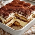 - Finish and serve: Just before serving, dust the top generously with cocoa powder using a fine mesh sieve for a classic tiramisu finish.