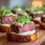 • Assemble fresh: For best texture, build crostini just before serving to enjoy crisp edges and tender beef.