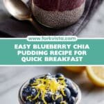 - Layer it up: Alternate blueberry chia pudding with Greek yogurt or whipped coconut cream in a glass for an elegant parfait.