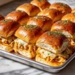 I love how Buffalo chicken sliders strike the perfect balance between spicy, creamy, and comforting—all tucked inside soft, pillowy rolls. It’s the kind of recipe that feels like a warm hug after a long day. You’ll notice the rich melody of buffalo sauce and ranch dressing harmonizing with tender shredded chicken, while melted mozzarella and Parmesan cheese add that irresistible gooey pull. Whether it’s game day or a casual family night, these sliders bring everyone to the table with smiles. When I first tried this Buffalo Chicken Sliders Recipe, I was amazed at how simple it was to prepare yet so satisfying to serve. The sheet pan method makes assembling and baking super straightforward, letting you focus more on savoring the aromas while it cooks. You’ll trust me when I say the buttery, crisp-edged tops brushed with Italian seasoning elevate these sliders from everyday to unforgettable. By the end, you’ll want to have these sliders on repeat. They’re comforting but carry a lively punch—a perfect way to brighten up any mealtime without extra fuss. Ready to dive in?Why This Recipe Shines