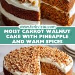 A moist and flavorful carrot walnut cake made with grated carrots, chopped walnuts, and a hint of warm spices like cinnamon, nutmeg, and ginger. Enhanced with crushed pineapple and optional raisins, this cake is perfect for any occasion and offers a wonderful blend of textures and tastes.