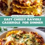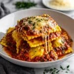 This Cheesy Million Dollar Ravioli Casserole is a comforting and delicious baked pasta dish featuring layers of tender frozen cheese ravioli, rich marinara sauce, and a generous blend of mozzarella and Parmesan cheese, all seasoned with Italian herbs. Perfect for a hearty weeknight dinner or a cozy family meal.