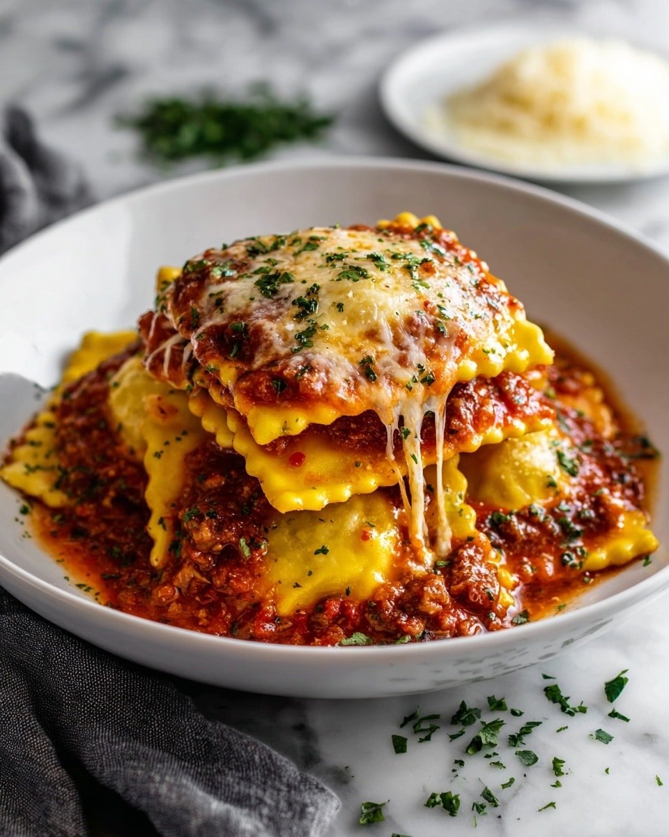 You’ll notice right away how the silky cheese ravioli pairs perfectly with the vibrant marinara, creating a contrast of textures — soft, creamy pillows nestled in a lightly caramelized, golden crust. This is a recipe that welcomes you to slow down and savor every forkful, and before you know it, it’ll become one of your own cozy kitchen classics.