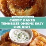 Tennessee Onions is a savory baked side dish featuring sweet onions smothered in a rich blend of cheddar, Monterey Jack, and Parmesan cheeses, infused with butter and aromatic herbs. Baked to golden perfection, this comforting dish offers a melty, crispy cheese crust with tender, flavorful onions beneath, making it an ideal accompaniment to a variety of mains.