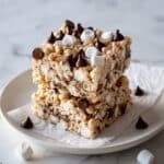 For the best texture, melt your butter and marshmallows slowly on low heat — rushing this step often leads to grainy or dry treats. When folding in the Rice Krispies, avoid stirring too vigorously to keep them crisp and airy. Also, wait until the mixture cools slightly before adding chocolate chips to prevent them from melting into one gooey mass — those pockets of chocolate make all the difference!