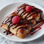 Delight in these decadent Chocolate Fudge Pop Tarts topped with a tangy raspberry glaze. Featuring a rich cocoa-infused pastry filled with a luscious chocolate fudge, this homemade treat combines flaky, buttery crust with a smooth, creamy center. Finished with a sweet and tart raspberry drizzle and optional festive toppings, these pop tarts are perfect for breakfast or an indulgent snack.