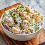 • Avoid freezing: Mayonnaise-based salads don’t freeze well; freezing can break the creamy emulsion and turn the texture grainy.