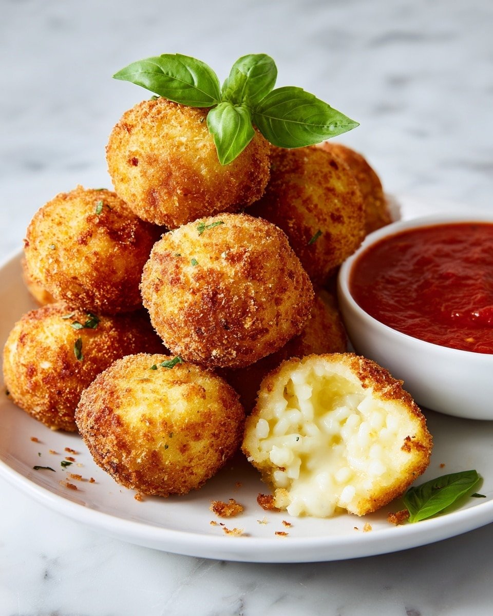 You’ll notice how these rice balls transform humble cold risotto into something silky, golden, and utterly irresistible. And pairing them with a fresh, tangy marinara dipping sauce adds that perfect balance of warm spice and acidity. It’s such a satisfying way to share a cozy meal — you’ll want to invite friends over just to make these together.