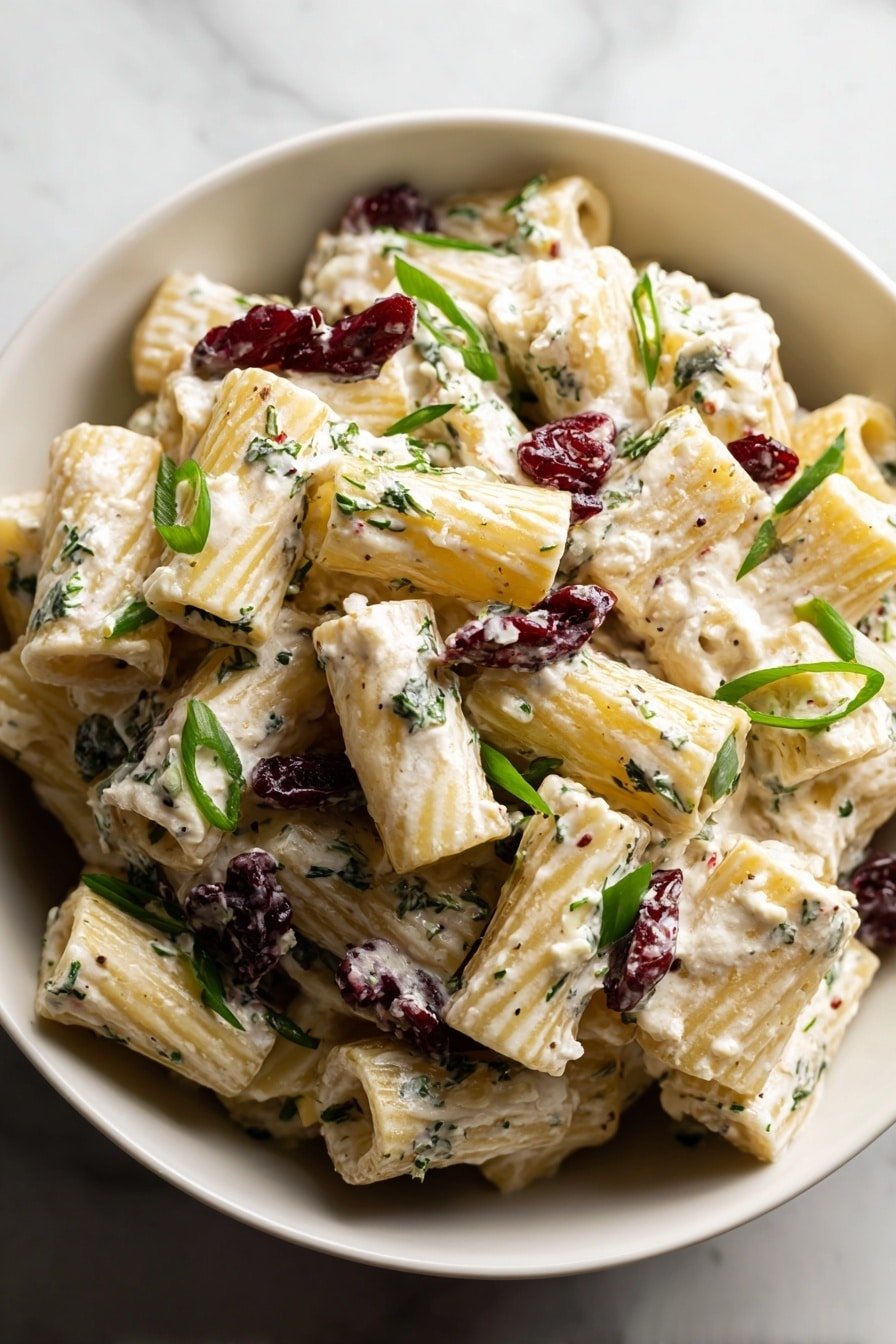 There’s something wonderfully comforting about a pasta salad that feels fresh yet satisfying — and that’s exactly what you get with the Feta Cranberry Rigatoni Salad Recipe. I love how the creamy, salty feta mingles with the sweet burst of dried cranberries, all tied together with a bright, lemony vinaigrette. It’s like a little party of textures and flavors in every bite. When I first tried this salad, the balance of crisp baby spinach with the toothy rigatoni really stood out. It’s a dish that’s just as happy on a picnic blanket as it is gracing your kitchen table on a cozy night in. Plus, the gentle acidity of that dressing wakes everything up — you’ll notice it brightens the palate, making each forkful irresistibly fresh. This recipe is forgiving too — whether you’re a seasoned cook or just learning, it holds its own with simple steps and straightforward ingredients. You’ll build confidence as you toss together a texture-rich, flavorful dish that’s sure to become a new favorite.