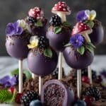 These Forbidden Forest Blackberry Cheesecake Pops are enchanting bite-sized treats featuring creamy cheesecake swirled with a vibrant blackberry compote, coated in rich dark chocolate and adorned with magical edible decorations. Perfect for festive occasions or a fun dessert, these pops combine fruity tartness with smooth, sweet cheesecake and a delightful crunch.