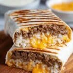 This Grilled Cheese Burrito recipe combines flavorful taco-seasoned ground beef, creamy cheeses, and zesty sauces wrapped in a warm flour tortilla and grilled to crispy perfection. Perfect for an easy, satisfying lunch that brings together the best of a burrito and a grilled cheese sandwich.