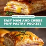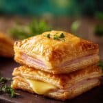 Ham and Cheese Puff Pastry Pockets Recipe - Recipe Image — Ham and Cheese Puff Pastry Pockets, savory puff pastry snacks, easy ham and cheese appetizer, flaky pastry bites, quick lunch ideas with ham and cheese