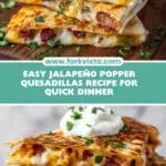Jalapeño Popper Quesadillas combine creamy, cheesy spiced filling with crispy tortillas, making a perfect appetizer or quick snack featuring a spicy kick from fresh jalapeños and savory bacon.