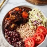 This authentic Jamaican Oxtail recipe delivers rich, tender, and flavorful oxtail stew simmered with spices, vegetables, and butter beans. Marinated with a blend of browning, garlic, Worcestershire sauce, allspice, and thyme, the oxtail is first seared and then pressure cooked to perfection, creating a deliciously hearty Caribbean comfort dish best served with rice and peas.