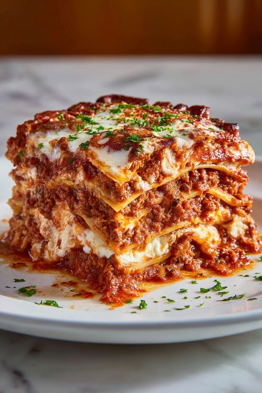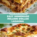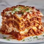 Million Dollar Lasagna is a rich and flavorful Italian classic featuring layers of savory meat sauce, creamy ricotta, melted mozzarella, and Parmesan cheese, baked to bubbly perfection. This comforting dish combines ground beef, Italian sausage, aromatic herbs, and no-boil lasagna noodles for an easy yet impressive meal.