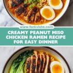 One of my favorite memories with this Peanut Miso Chicken Ramen Recipe is sharing it on chilly evenings, watching the broth swirl with tender chicken and crisp-edged veggies, that buttery steam rising and promising something special. You’ll love how the textures play together — silky noodles, soft-boiled eggs, and a broth that wraps everything in a warm, satisfying hug.