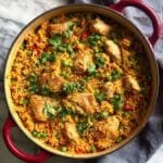 This Nando’s Portuguese Chicken and Rice recipe offers a flavorful and aromatic one-pot meal featuring tender chicken thighs seasoned with a blend of spices, seared to perfection, and cooked with turmeric-infused basmati rice and vibrant vegetables. Finished with a drizzle of Perinaise and fresh green onions, this dish captures the essence of Portuguese-inspired peri-peri flavors in an easy-to-make, wholesome dinner.