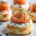 Delicious and elegant puff pastry rolls filled with creamy cream cheese, smoked salmon, and fresh dill. Perfect as appetizers or a light snack, these golden-brown rolls combine flaky pastry with savory smoky flavors and a hint of herbaceous freshness.
