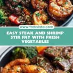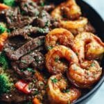 A flavorful and quick steak shrimp stir fry featuring tender sirloin steak, succulent shrimp, and a vibrant medley of fresh vegetables all cooked in a savory Asian-inspired sauce. This dish is perfect for a satisfying weeknight meal served over steamed rice and garnished with sesame seeds and green onions.