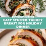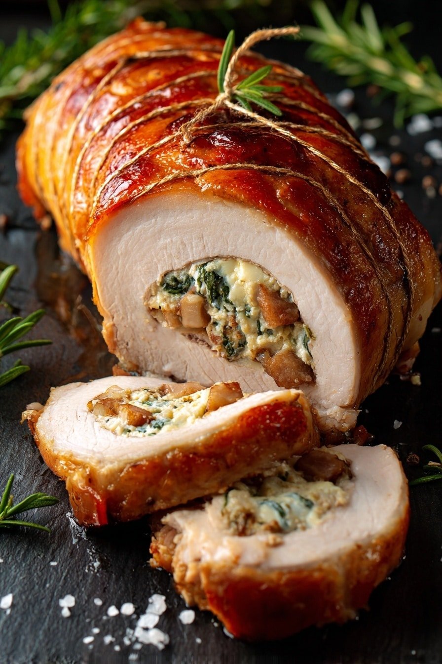 Can I use bone-in turkey breast for this recipe?You can, but boneless works best for even rolling and cooking. If using bone-in, remove the bone carefully and flatten similarly before filling. What if I don’t have fresh herbs?