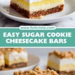 • Lemon zest: Add a teaspoon to the sugar cookie dough and a splash of lemon juice to the cheesecake for a bright, citrusy twist.