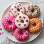 - Glaze the donuts: While the donuts are still warm, dip each one into the glaze to coat thoroughly. Then, sprinkle assorted Valentine’s Day sprinkles over the glazed donuts for a festive touch.