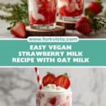 - Optional Garnish and Serve: Top each glass with optional chopped fresh strawberries if you like. Serve immediately with a straw and enjoy this creamy, fruity vegan milk drink.