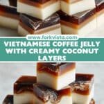 Vietnamese Coffee and Cream Jelly (Thạch Cà Phê) is a delightful layered dessert combining the bold, aromatic flavors of instant coffee with the creamy richness of coconut and evaporated milk. This refreshing jelly dessert features alternating coffee and coconut cream layers, set with agar agar powder for a light, firm texture. Perfect for a sweet treat that captures the unique blend of Vietnamese coffee culture and tropical creaminess.
